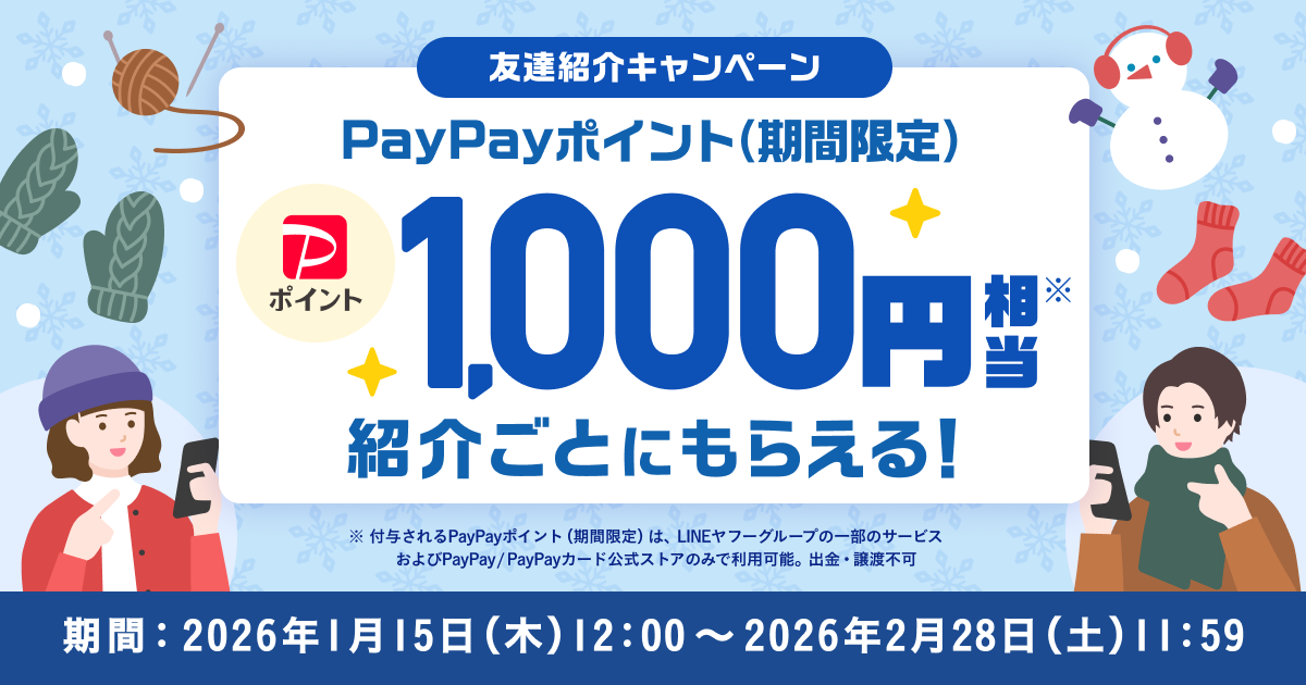 【紹介者の方はこちら】1,000円相当のPayPayポイント(期間限定)がもらえる!『友達紹介キャンペーン』1月~2月開催のお知らせ