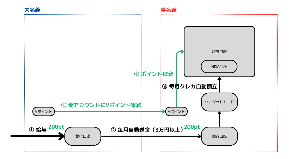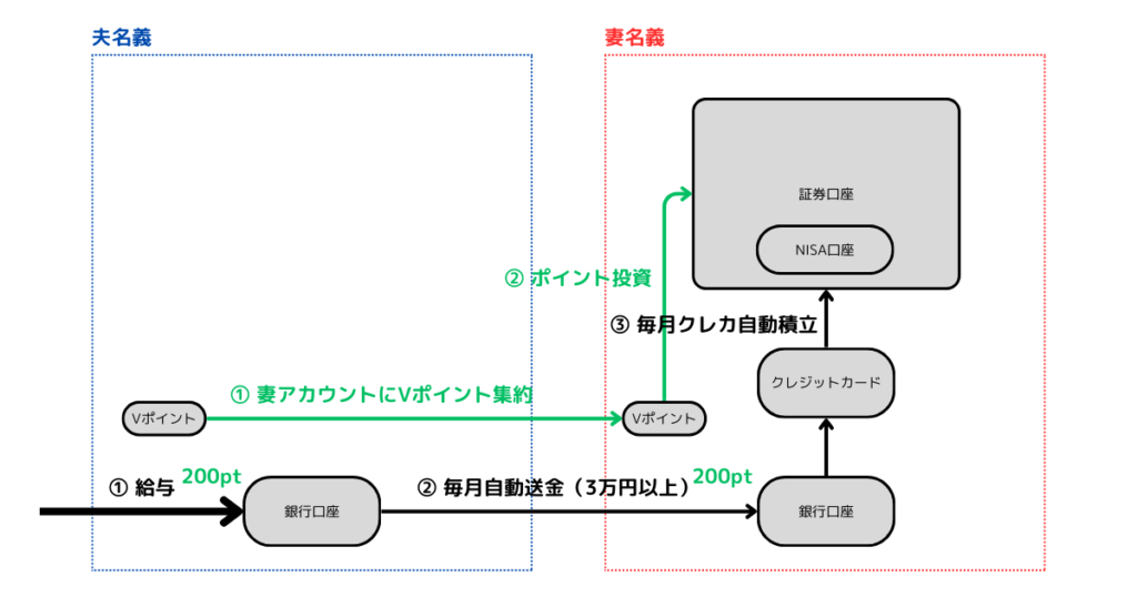 【仕組み構築(数ヶ月に1回作業)】夫婦でポイントを合算し、追加投資